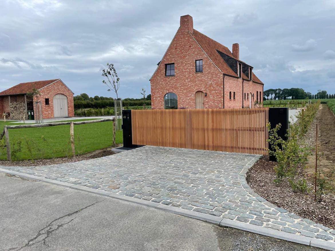 Een duurzame en veilige oplossing voor oprit of tuin. Deze op maat gemaakte poort combineert elegant design van metaal en hout met het comfort van automatisatie.