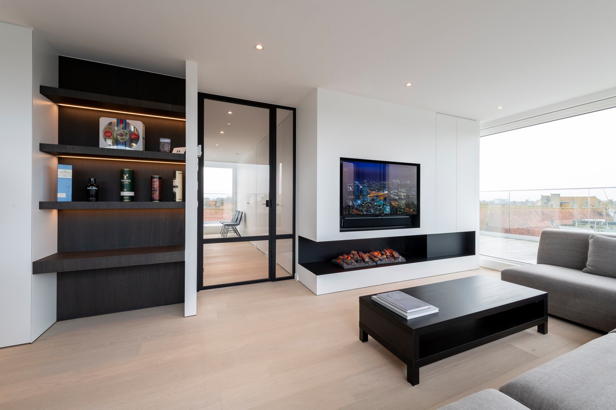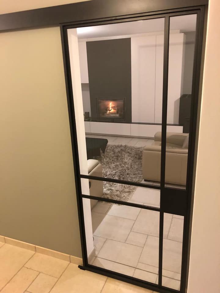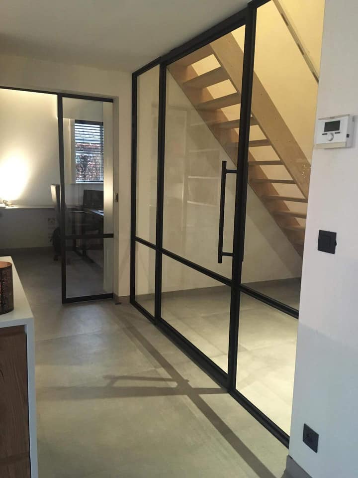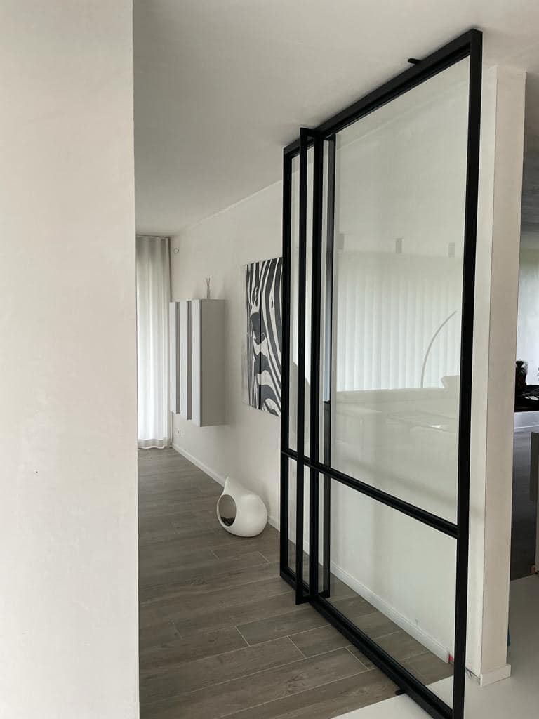 Glasraamconstructie met geïntegreerde schuifdeuren